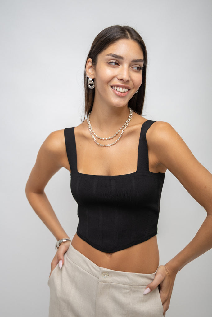KNITTED CROPPED TOP – CORSET STYLE BLUE JEANS