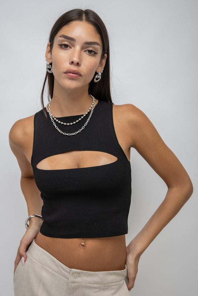 KNITTED CROPPED TOP – FRONT SLIT CREAM